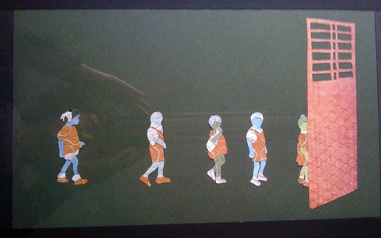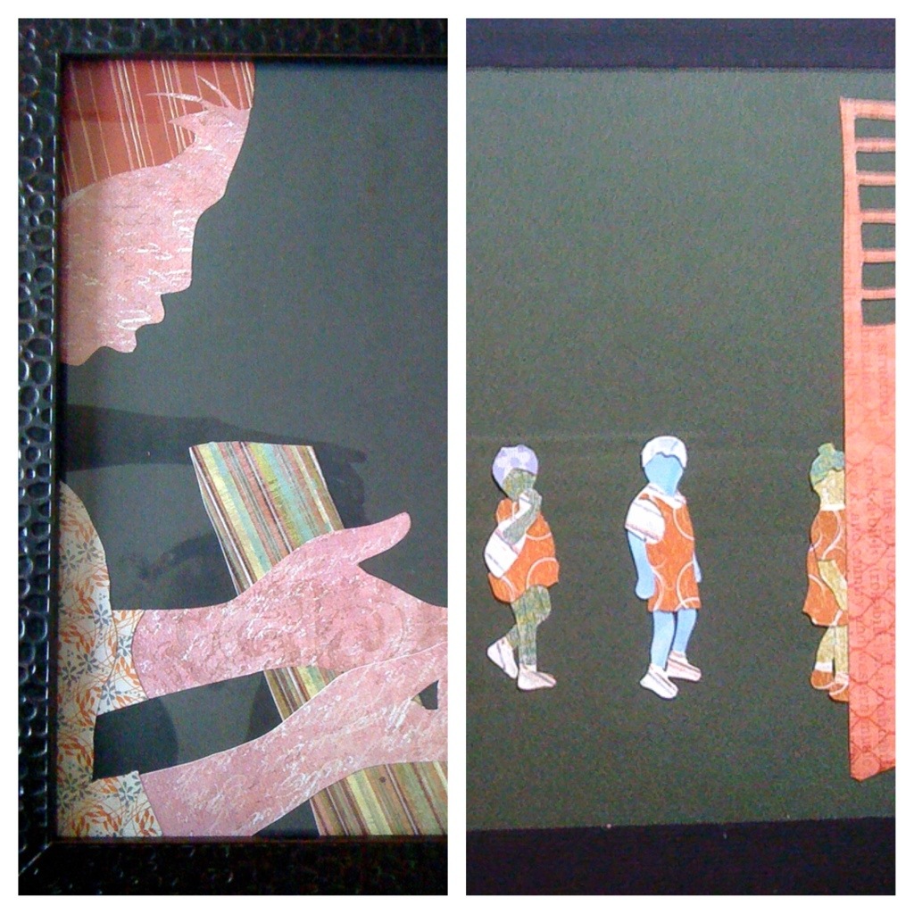After the earthquake in Haiti in 2010, a coworker held an art auction as a benefit and I donated two pieces. My coworker gave me some images from Haiti that I could use. The first is a woman praying – this piece was important for me obviously because of the cause, but also because I hadn’t really thought about framing or negative space before. The second is children on their way to school. This was important because I hadn’t done much with multiple people, and especially with such small people. This was also a diversion from what had really only been pictures of women before. (Please excuse my reflection in the photos!!)