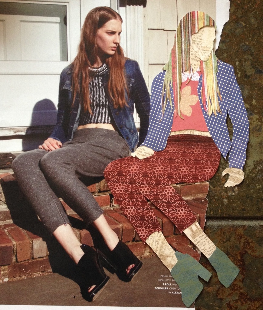 For this girl, I decided to change all her clothes to be bright and colorful, but her skin I wanted to be duller and more pensive – filled with small sepia type like someone who is totally in her own head. I also used the stripes for her hair because even though I wanted it to be colorful, I still wanted it to be limp and stringy.